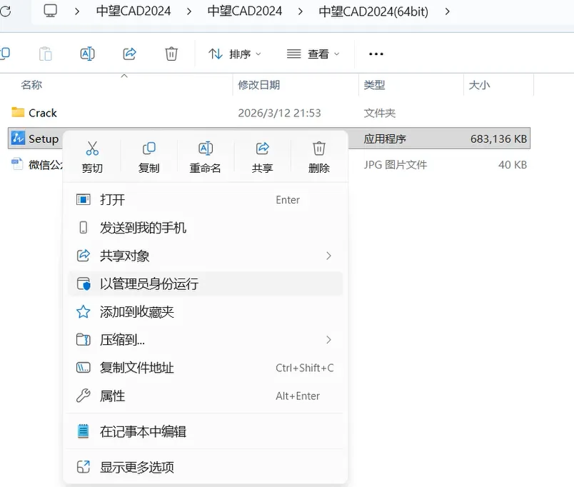 2.4,鼠标右击【setup】选择【以管理员身份运行】。