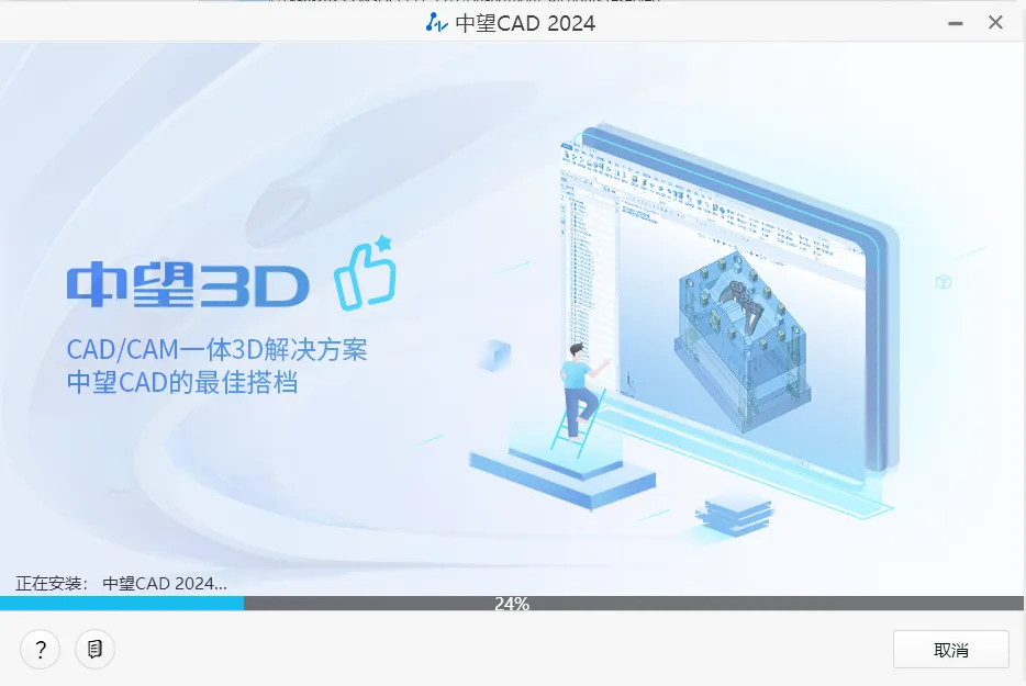 2.3,打开解压后的文件夹,双击打开【中望CAD2024】->【中望CAD2024】->【中望CAD2024(64bit)】文件夹。