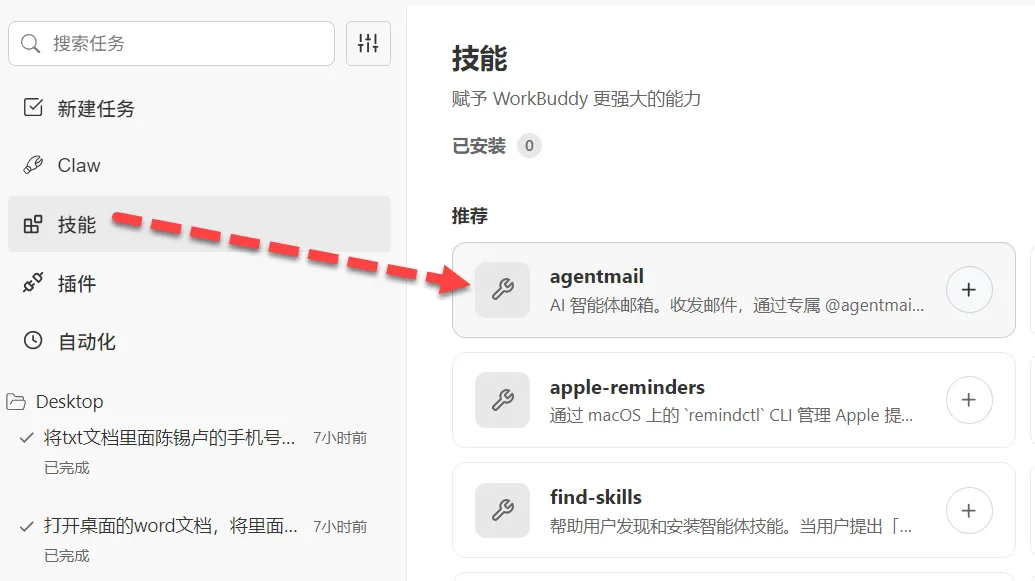 如果你的版本没有技能,也可以登录网站https://skillhub.tencent.com