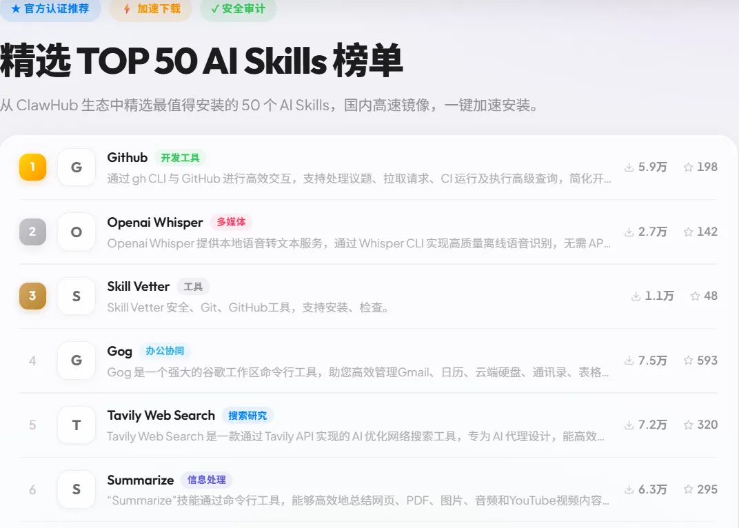 这是官方认证推荐,安全可靠,你要处理什么就下载对应的技能。