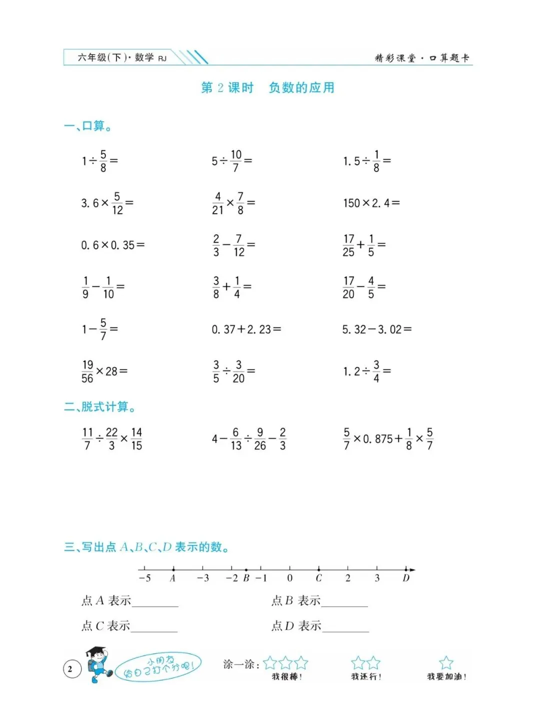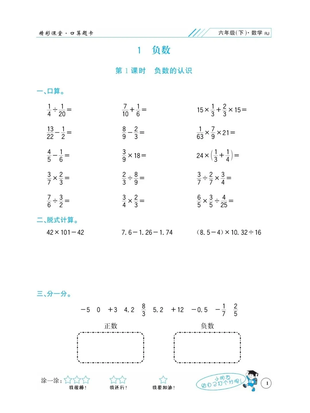 「数学人教版 1~6年级下册 《黄冈口算天天练》」