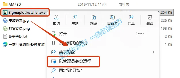 2.打开刚刚解压的文件夹,鼠标右键点击【SigmaplotInstaller】选择【以管理员身份运行】