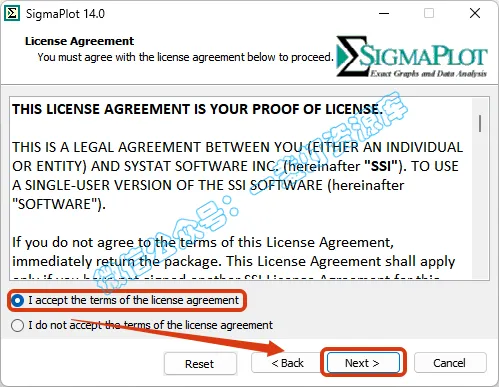 4.选择【I accept the terms of the license agreement】,点击【Next】