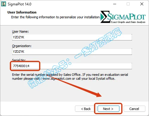 5.输入信息及序列号Serial No:775400014,点击【Next】