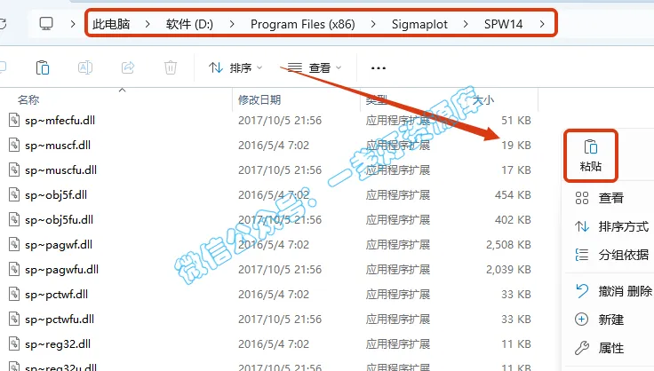 13.在打开的文件夹空白处,鼠标右键【粘贴】刚才复制的文件
