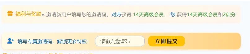 找到个人中心,邀请码输入0482d6d28539424c,白嫖14天高级会员。