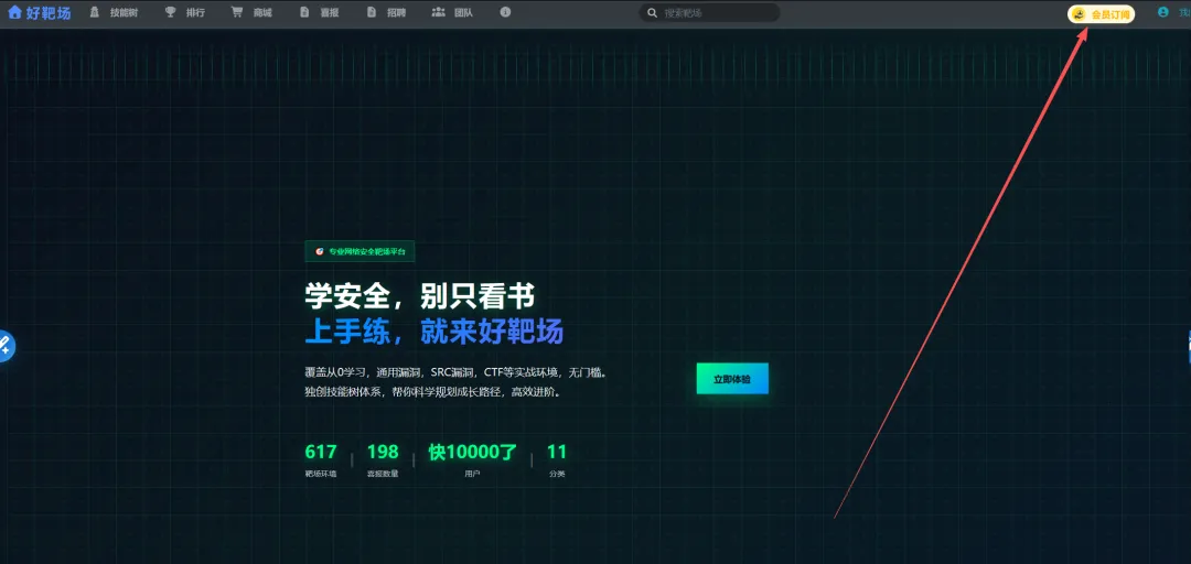 关注好靶场bilibili。拿着关注截图找到客服,领取5积分或者7天高级会员。