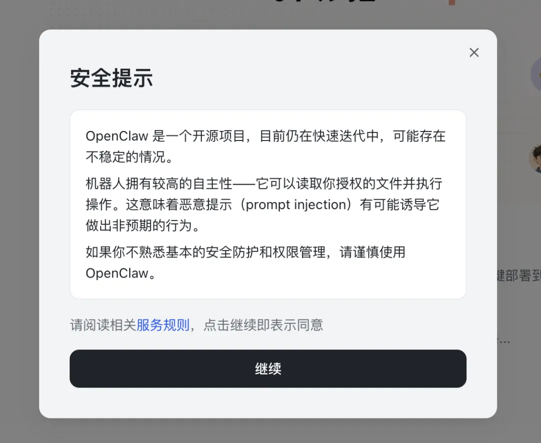 在弹出的安全提示框中,选择「继续」按钮,进入下一步。