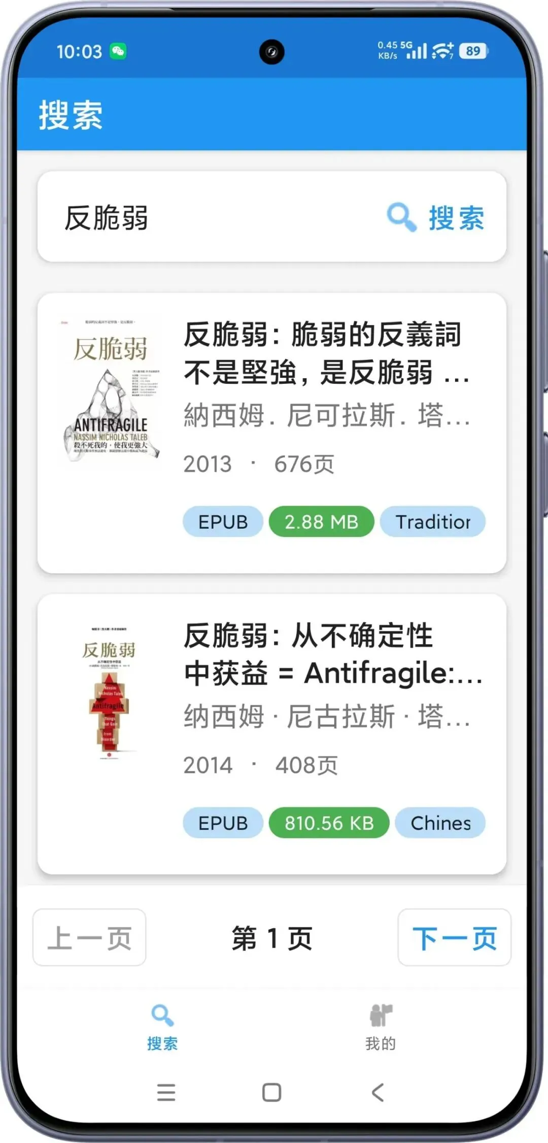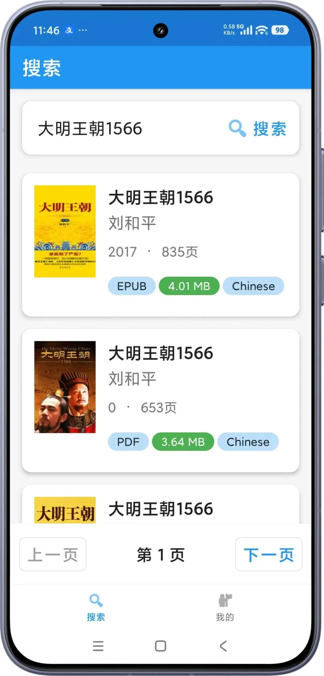 2.先搜索,后登录:打开APP,直接在搜索框输入图书名并点击搜索。然后,选择需要的格式后,进入下载页面。