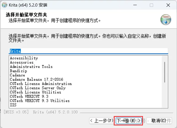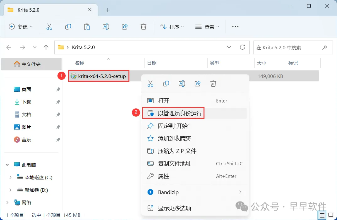 3、找到【Krita v5.2.0 x64-setup】应用程序,右键选择【以管理员身份运行】它