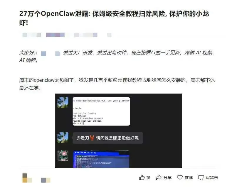 这些信息在传播过程中不断被放大,使得 OpenClaw 的公网暴露情况显得异常严峻。