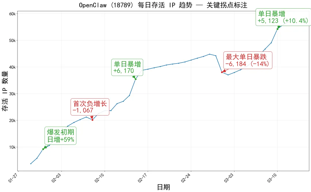 我们的当日存活 | 55,968 | 3 月 11 日当天 18789 端口实际在线 |