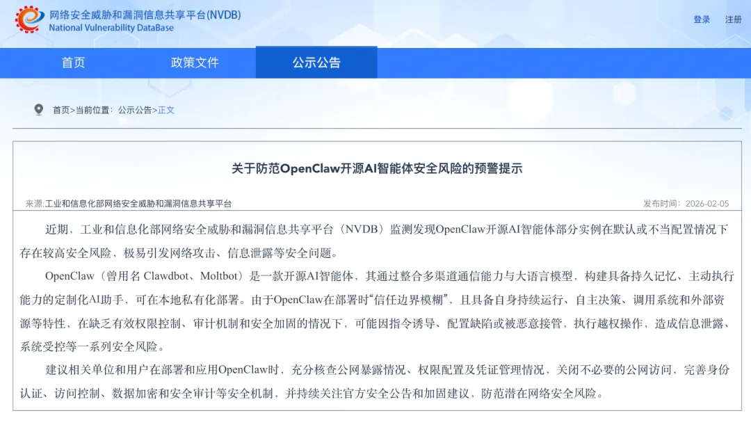 工业和信息化部 NVDB 平台 于 3 月 8 日发布安全预警