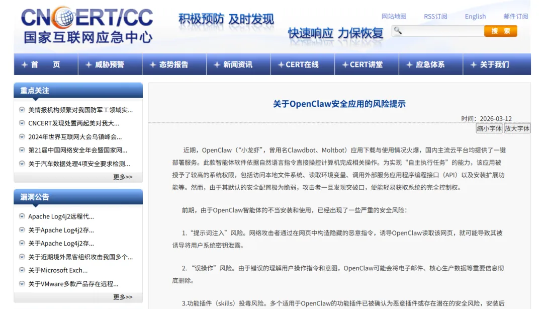 国家互联网应急中心 CNCERT 于 3 月 10 日发布风险提示