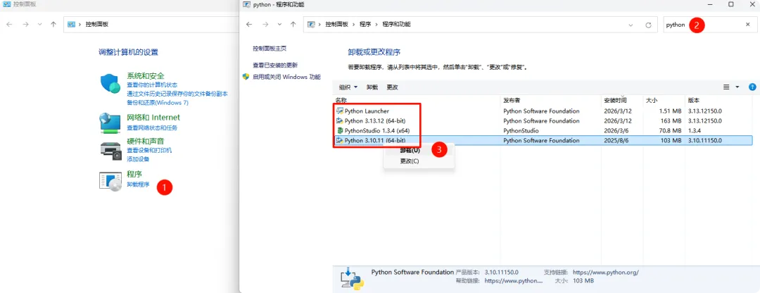 一、第一步:标准卸载Python主体程序(基础核心步骤)