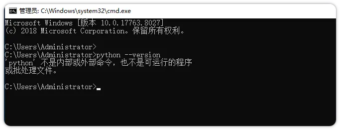 依次输入以下命令,若均提示‘python’不是内部或外部命令、‘pip’不是内部或外部命令,则说明卸载彻底: