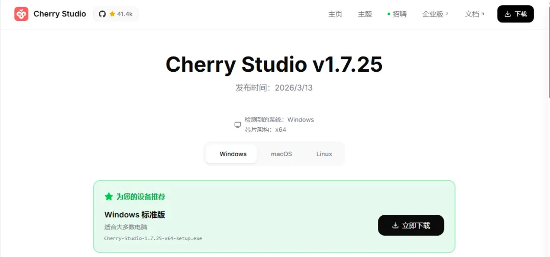 2.1下载安装包,安装【cherry studio】(这里主要以Windows来进行展示)