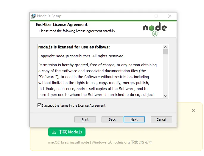①下载安装【Node.js】组件,