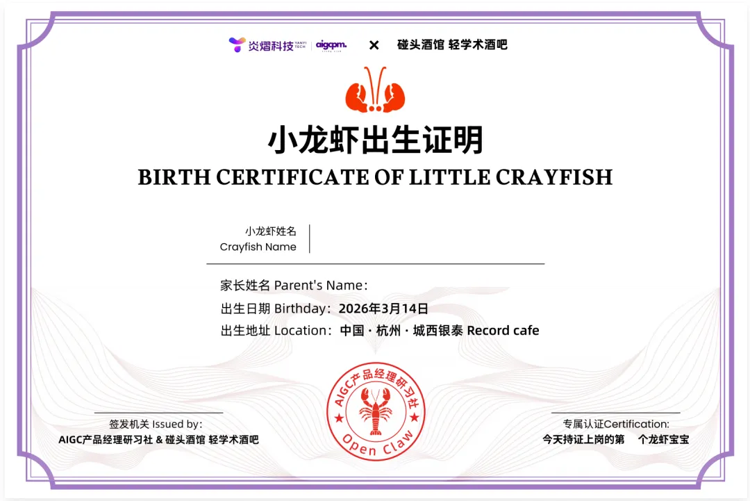 无论线上线下,每个同学都会拥有自己的龙虾证明