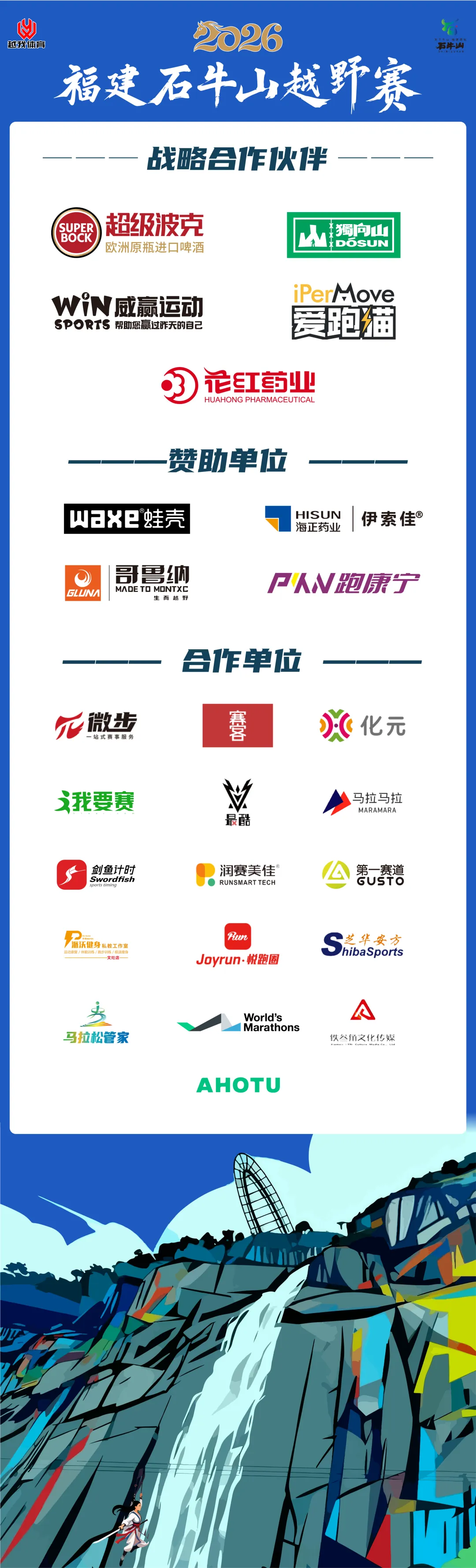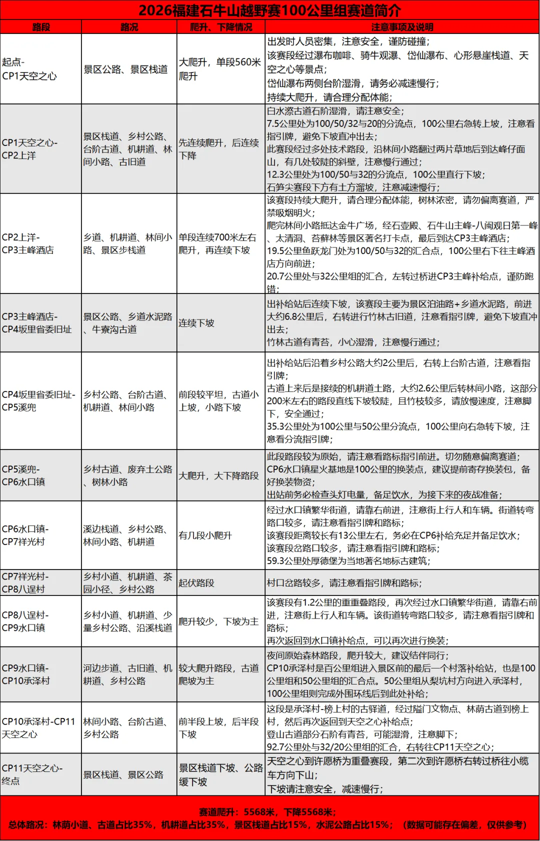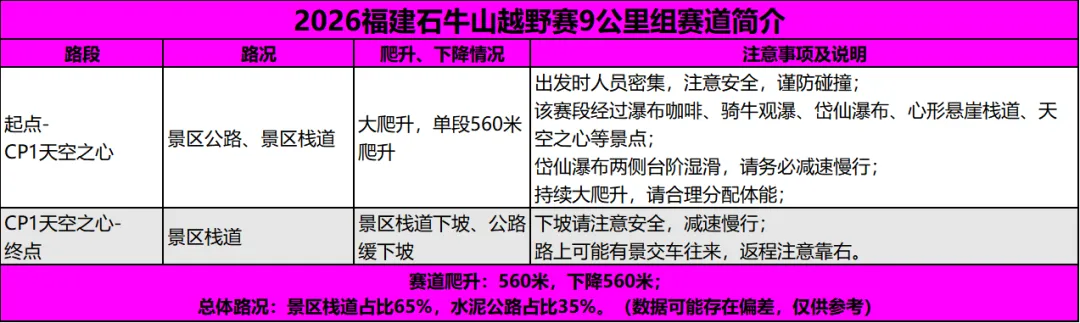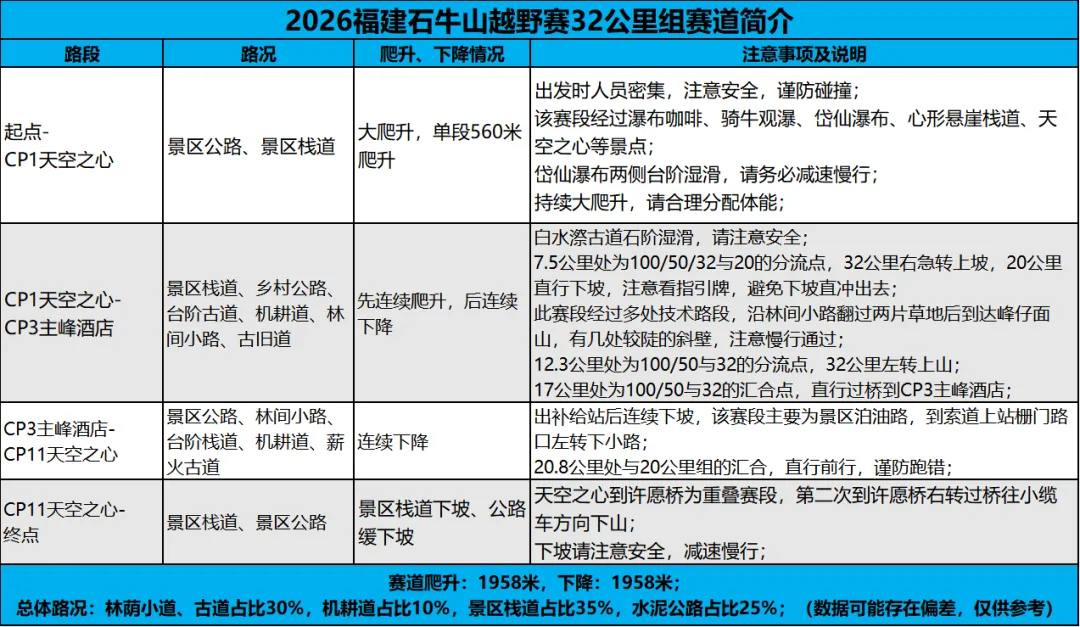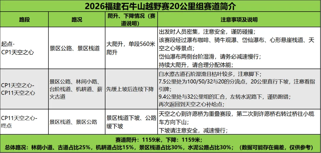 轨迹下载&赛道简介 | 2026福建石牛山越野赛2026福建石牛山越野赛将于3月28日激情开跑开赛进入倒计时各组别轨迹及赛道简介出炉心有所向,步履铿锵每一次过弯,都是对未知的丈量每一次起伏,都在积蓄向上的力量脚下即征途,心中有轨迹,便所向披靡轨迹下载及赛道简介100公里50公里32公里20公里9公里强制装备清单特别注意:1、100公里和50公里冲锋衣由组委会提供,其他组别选手需自带冲锋衣或防雨外套;2、本次赛事所有补给点不提供一次性纸杯,请务必自备水具/折叠杯;3、GPS在比赛当天早上起跑前要开启; ⬇ 点击下图查看更多赛事资讯 ⬇END更多赛讯请关注“醒龙军团”、“越我体育”公众号