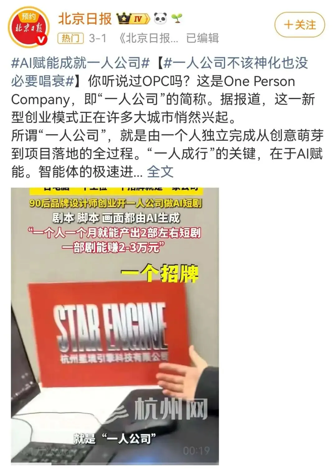 多地已经开始支持“AI 一人公司”