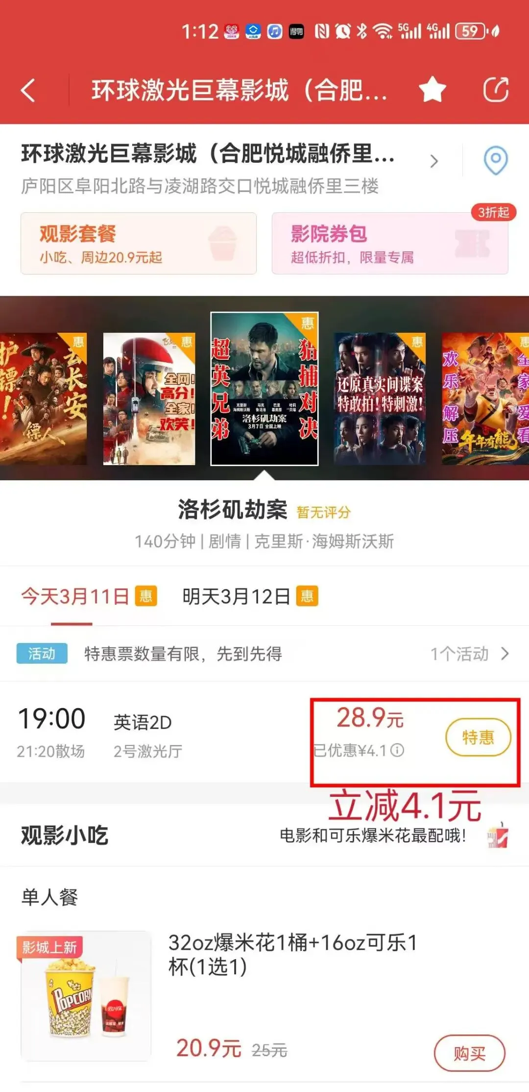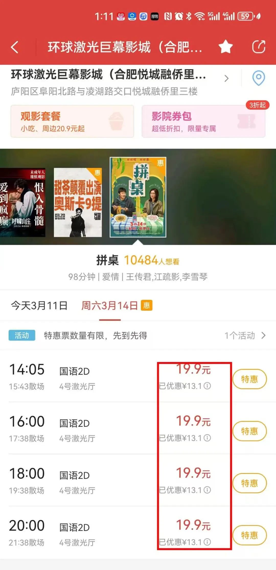 下载猫眼APP购票 每天11:00开启立减4.1优惠 预定拼桌仅需19.9元