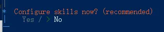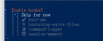 同样方向键选中Skip for now,按回车 先跳过配置,后续用命令再填