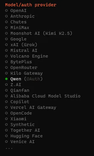 选中All providers,按回车,我们选All providers会显示所有可用模型,避免漏掉你后续要配置的目标选项