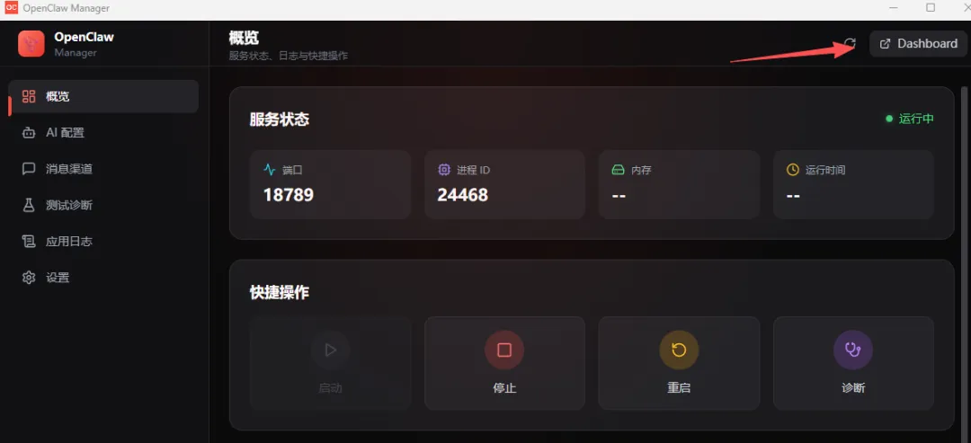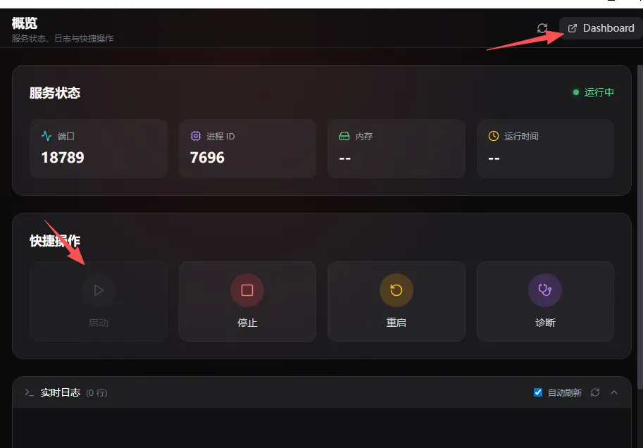 启动服务,点击 “Dashboard”