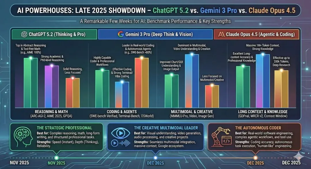 Claude像老哥,ChatGPT像活泼助手,Gemini像工具箱。看基准: