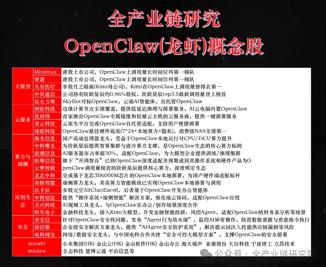 a. 算力基础设施是本轮浪潮最确定的受益方向。AI相关应用的运行模式对算力需求的革新是颠覆式而非跃进式的,算力会像订阅服务一样被持续消耗,无论OpenClaw是否达成用户部署的预期目标,只要安装就会持续产生算力消耗,这对国外英伟达、AMD,国内阿里云、腾讯云等云服务商均为结构性利好。
