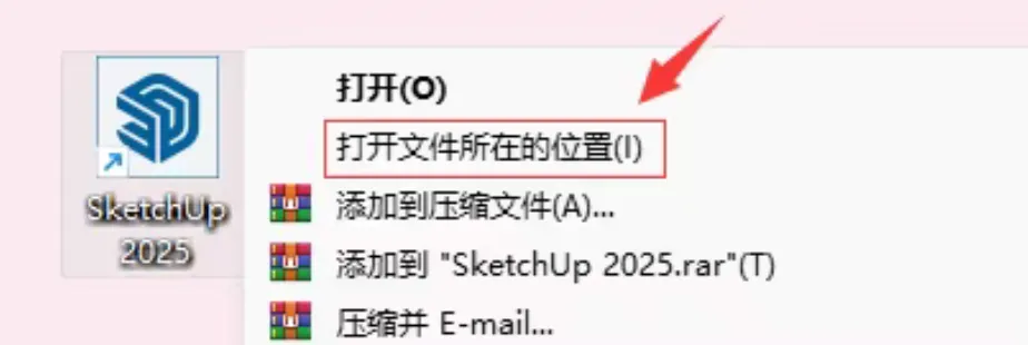 8.鼠标右击桌面【SketchUp2025】图标选择【打开文件所在的位置】