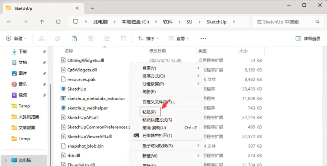 9.进入到sketchup所在位置后,鼠标右键选择复制