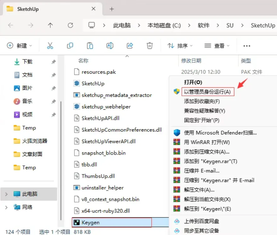 10.鼠标右击粘贴后的【Keygen】选择【以管理员身份运行】