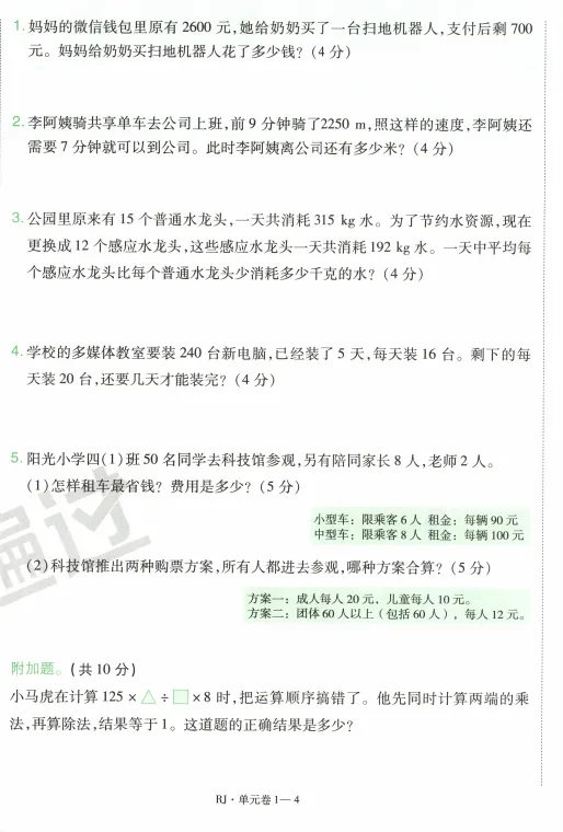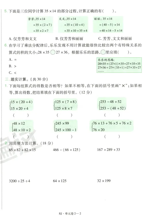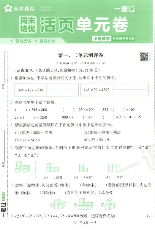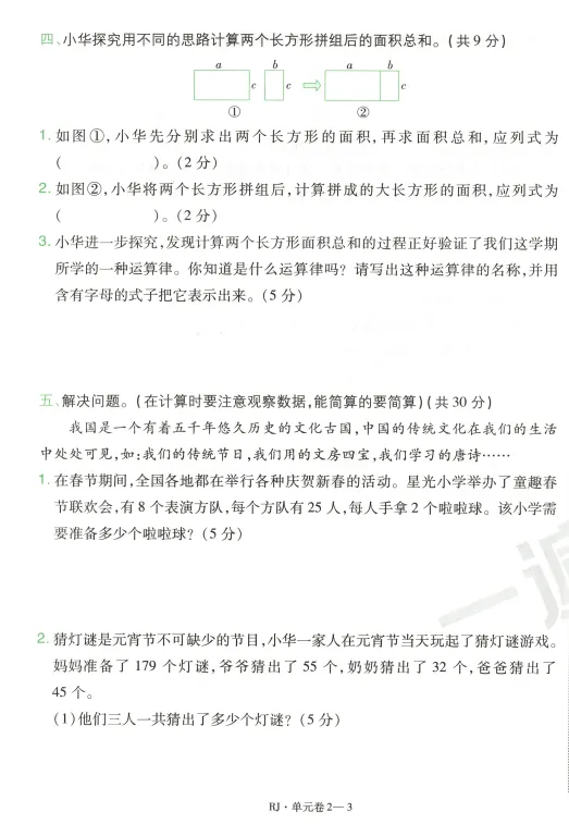 部分活页单元卷预览