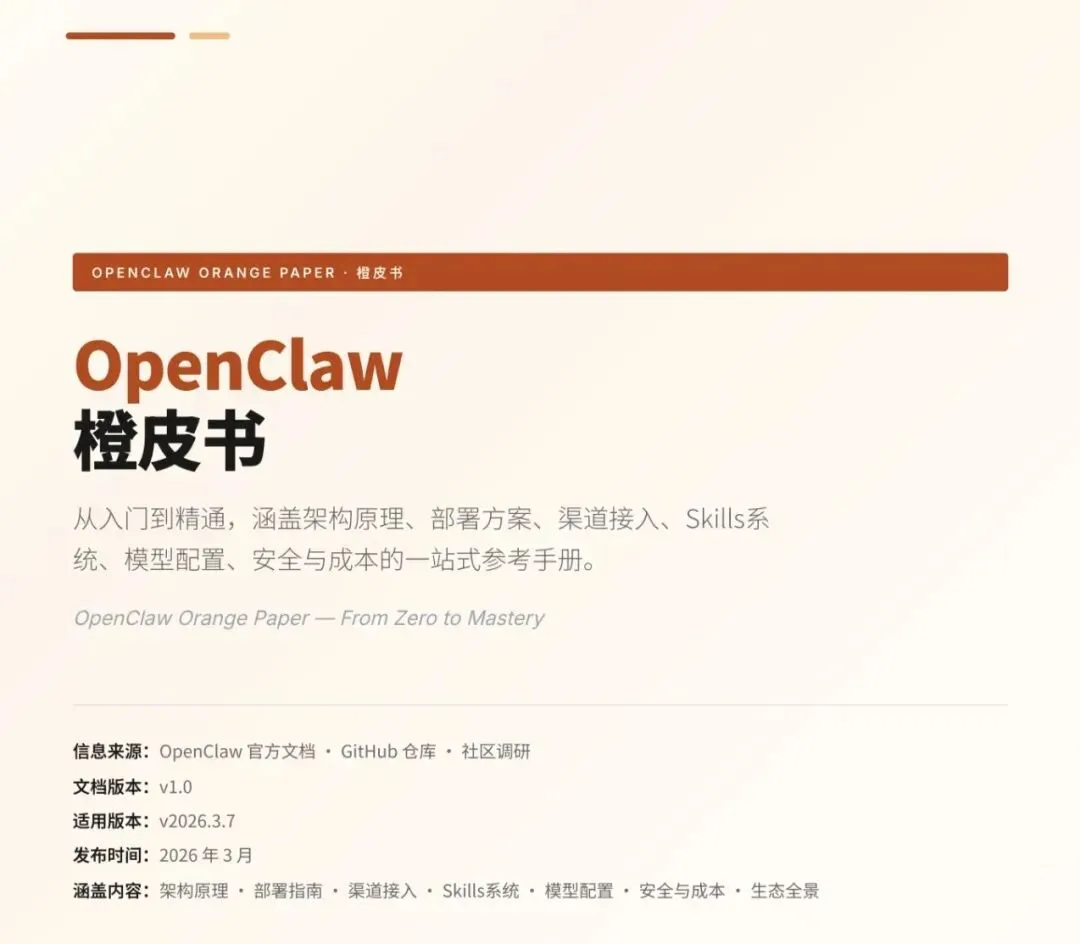 企业 open claw培训手册从安装到使用全方面教程手册橙皮书员工手册级别open claw培训手册从架构了解到入门安装以及使用安全注意全覆盖的一款来自花叔最新教程手册橙皮书 pdf完整版本需要关注龙虾群加群领取