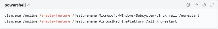 2.启用WSL2组件(复制粘贴执行)。