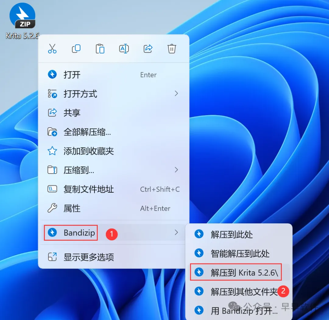 1、下载Krita 5.2.6软件安装包到电脑上,右键选择【解压到Krita 5.2.6\】