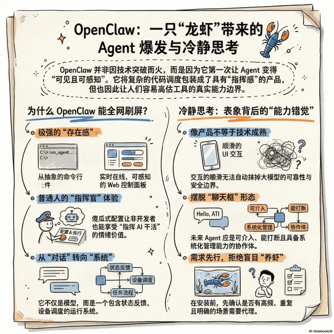 最近AI圈里全在刷 OpenClaw,这只“龙虾”可以说是火得一塌糊涂,目前全民都在养龙虾。三水儿最近自己研究了一下,也和实验室的老师和开发的朋友们一起讨论了一下。聊完之后,最大的感触是:OpenClaw的火爆对我们有很多启示性的意义,也有很多让我们需要警醒的事情。我把这些思考梳理了一下,也就是今天这篇文章。