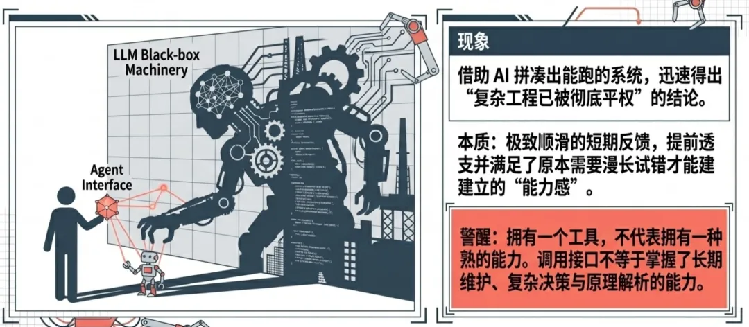 很多原本需要漫长试错、长期积累、反复踩坑才能建立起来的能力感,被一个“看起来挺像那么回事”的结果提前满足了。
