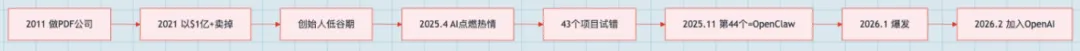 Andrej Karpathy(前特斯拉 AI 总监):“这是我见过最接近科幻起飞的东西。” 1.2 P eter Stein berger 的故事:从 PDF 王者到 OpenClaw 缔造者 背景:奥地利人,花13年打造 PDF 编辑公司 PSPDFKit,最终以超过1亿美元出售。 用 AI 仅花1小时写了个小工具,竟基本能替代他13年心血的产品——巨大冲击,让他一度迷茫。 -2025年重燃