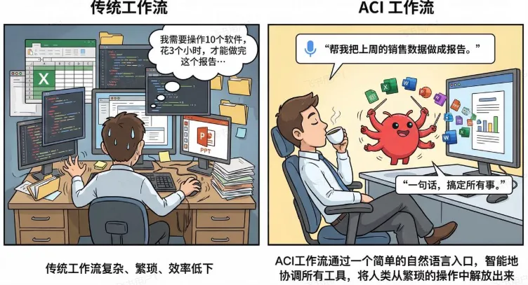 大家热议AGI(通用人工智能),但OpenClaw真正做的是ACI(Agent-Computer Interface,代理-计算机接口)——让AI真正帮人把事办了。 我们需要的不是聊天天才,而是能干活的“AI经理人”。 范式彻底翻转