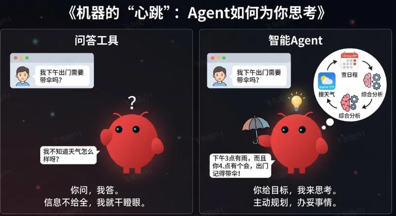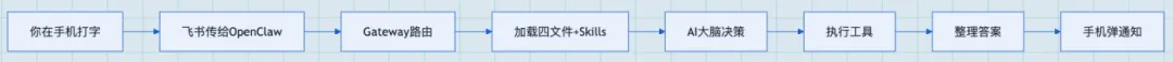 AGENTS.md(发邮件前必须确认) + SOUL.md(用简洁直接风格) + USER.md(你是 AI 硬件产品经理) + MEMORY.md(上次客户关心交付时间) 开机仪式 新对话启动 → 按固定流程加载四文件 → 可在 AGENTS.md 自定义启动检查清单。 核心洞察 “OpenClaw 的每一个行为都可以追溯到磁盘上的一个文件。” 官方文档 "OpenClaw 的每一个行为都可以追溯到磁盘上的一个文件。" 额外两个迟早会碰到的概念 ⑦Tools(工具) 瑞士军刀,内置 25+ 个:命令行执行、浏览器自动化(像真人一样打开网页、登录、填表、点击、截图)。 ⑧MCP(Model Context Protocol) Anthropic 推的开放标准,像 USB 接口。 让 AI 即插即用连接 Notion、Google Drive、数据库等,无需单独适配。 2.4 一条消息的旅程 Agentic Loop(代理循环) AI 自己决定下一步做什么,可能搜天气、查日程、综合后再回复你。这种自主决策的循环就是 Agent 的核心。 2.5 三个核心原理:它为什么这样设计? 原理一:Agentic Loop(代理循环) 不是“你说一步我做一步”,而是“你给目标,我自己拆解、执行、检查、迭代”。 → AI 可能循环多次:查天气 → 读你日程(明天有户外会议) → 综合建议穿什么、带伞 核心区别:聊天机器人是“问答”,Agent 是“目标驱动,自己想办法达成”。 原理二:双层记忆调度 工作记忆(上下文窗口):容量小、临时、用完就忘(像同时记7个电话号码) 长期记忆(磁盘文件):永久保存,但需“回忆”过程(像翻笔记本) 对话中把重要信息“抄”到 MEMORY.md 文件里。 原理三:文件驱动架构 核心哲学:OpenClaw 每一个行为都可追溯到磁盘上的一个文件。 可追溯:AI 为什么这么做?打开文件就知道,不用猜 对比 ChatGPT:行为藏在黑箱里,不知为何突然变风格。 OpenClaw:一切由你写在文件里的内容决定,透明、可控、非玄学。 三、它能做什么?真实案例 + 场景价值 “概念听一百遍不如案例看一遍。”以下四个真实用户常用场景,每个拆解“用了哪些模块”,方便举一反三。 3.1 办公提效 早间简报(社区最热门入门用法) 每天早7点自动:搜集新闻 → 提炼5条摘要 → 发到飞书 用了哪些模块:Heartbeat定时触发 + 搜索Skill + 消息投递Channel 用户反馈:“以前每天刷新闻30分钟,现在30秒看完。” 三合一精髓:定时 + 主动 + 个性化(MEMORY.md记住你关心的领域) 智能提醒(任务完成主动打电话) 示例指令:“整理完报告后打电话通知我” / “公众号排完版了打电话叫我审核” 不是设闹钟到点响,而是AI自己判断任务完成 → 直接拨打你手机 用了哪些模块:Heartbeat/Cron判断完成 + execute工具打电话 会议纪要自动化 开完会 → 把录音发给AI → 自动转文字 + 提取结论 & action items → 发给相关人 用了哪些模块:Channel接收文件 + 语音转文字Skill + 结构化输出Skill 日报/周报半自动化 AI根据当天飞书消息 + 工作记录,自动草拟日报框架 → 你只需2分钟改几个字 用了哪些模块:Heartbeat定时触发 + Memory记录工作上下文 3.2 自媒体提效 核心价值:把自媒体从“手工苦力”变成“AI 流水线”,一人带队干一个团队的活。 公众号一键排版 3000字长文 → 发给AI → 3分钟出精美排版 → 直接粘贴到公众号后台发布 用了哪些模块:Skill调用排版模板 + MEMORY.md记住你的风格偏好(字体、间距、配图习惯等) 小红书内容批量生成 一篇长文 → 5分钟自动拆成5条图文笔记 → 自动配标题、标签、小红书风格 → 发到你手机待审核/发布 用了哪些模块:内容拆解Skill + SOUL.md定义你的内容调性(文艺/干货/种草等) 短视频文案流水线 给一个选题 → AI一键生成:完整脚本 + 分镜描述 + 字幕文案 + 口播建议 用了哪些模块: 多Skill串联(脚本生成→分镜拆分→字幕优化) + MEMORY.md记录哪类选题数据表现好 越用越聪明的机制 不是模型突然变聪明,而是经验被系统化记录到 MEMORY.md: 用户真实反馈 “以前一个人干三个人的活,现在是一个人带着AI干一个团队的活。” 3.3 团队协作提效 4000封邮件两天处理完 出差两周积压4000封邮件 → AI两天内完成:自动分类、退订垃圾邮件、起草回复(供人工审核) 用了哪些模块:Channel接收邮件 + 分类Skill + MEMORY.md记住常用联系人/风格/历史回复习惯 团队站会自动化 每天下班前收集队员blockers → 早上自动汇总飞书+项目管理工具 → 生成站会简报 用了哪些模块:Heartbeat定时触发 + 多Channel数据聚合 + 结构化输出Skil l 3.4 “骚操作” AI自己给自己写Skill 你让它做一件没对应能力的事 → AI发现缺Skill → 自己写.md文件 → 自己读取安装 → 自己完成任务 AI自己判断该做什么 关键:没让你说“去验证”,它自己觉得“光整理不够,得试过才靠谱”