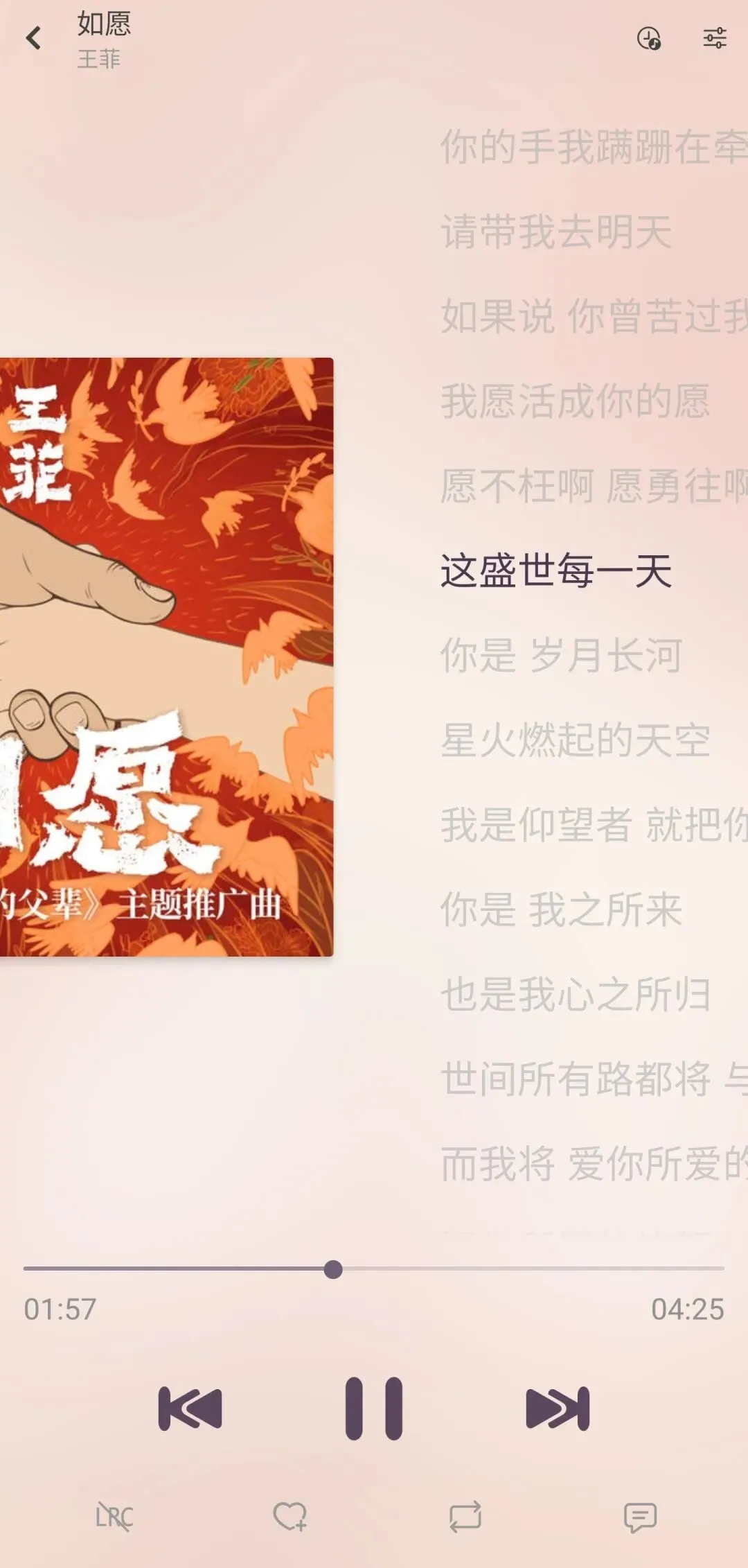 歌词查看、专辑封面、上下首歌曲、循环播放等