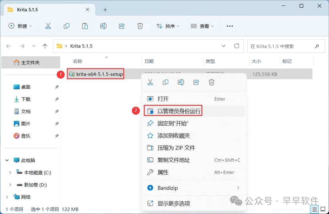 3、找到【Krita v5.1.5 x64-setup】应用程序,右键选择【以管理员身份运行】它