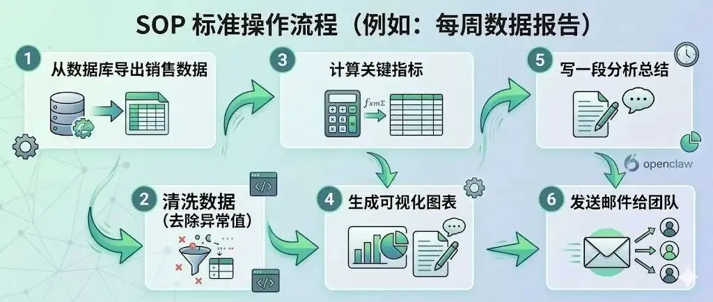 正确的做法是:把你的重复性工作整理成标准操作流程(SOP),然后让OpenClaw按流程执行。