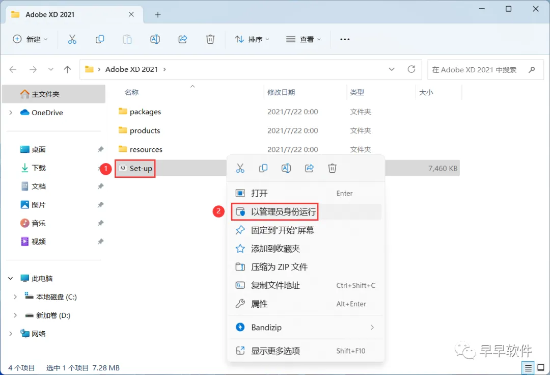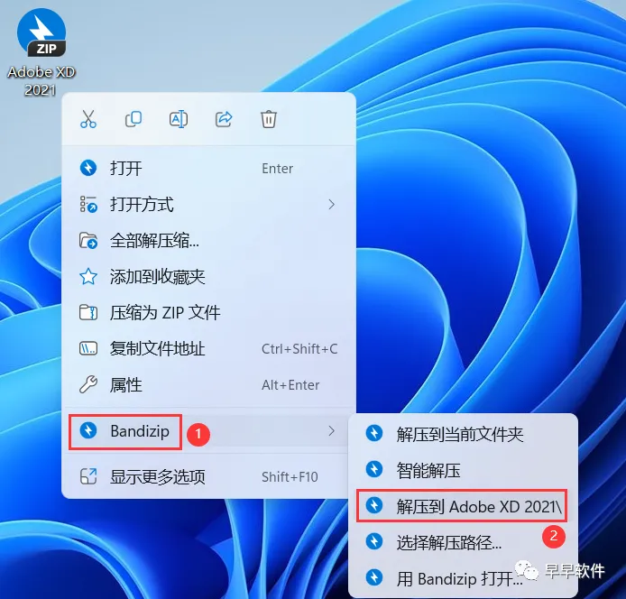 1、下载Adobe XD 2021软件安装包到电脑上,右键选择【解压到Adobe XD 2021\】