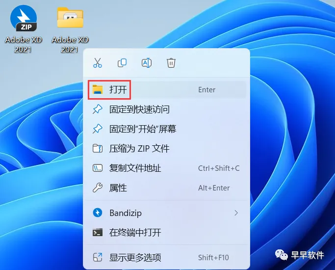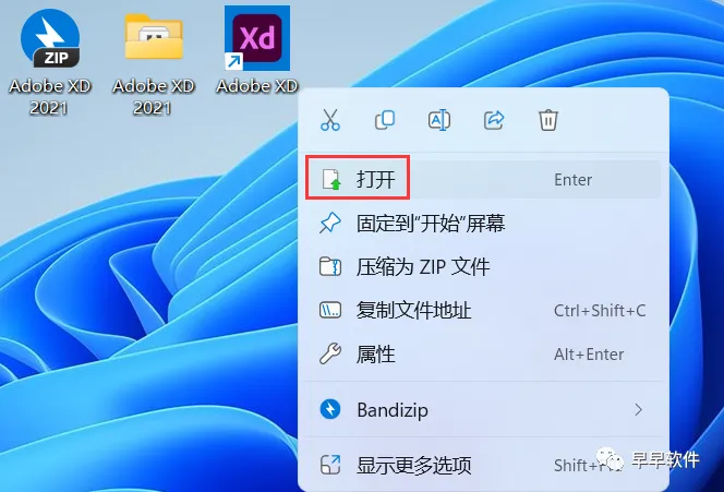 8、回到桌面,右键桌面上的【Adobe XD 2021软件图标】,点击【打开】