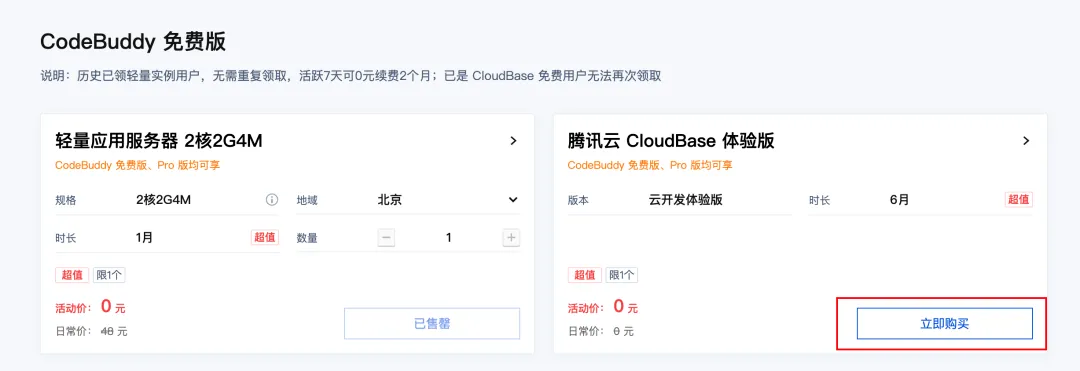 所以在 3 月 31 日之前,CodeBuddy 的用户还可以 免费领取并使用腾讯云的资源,包括: