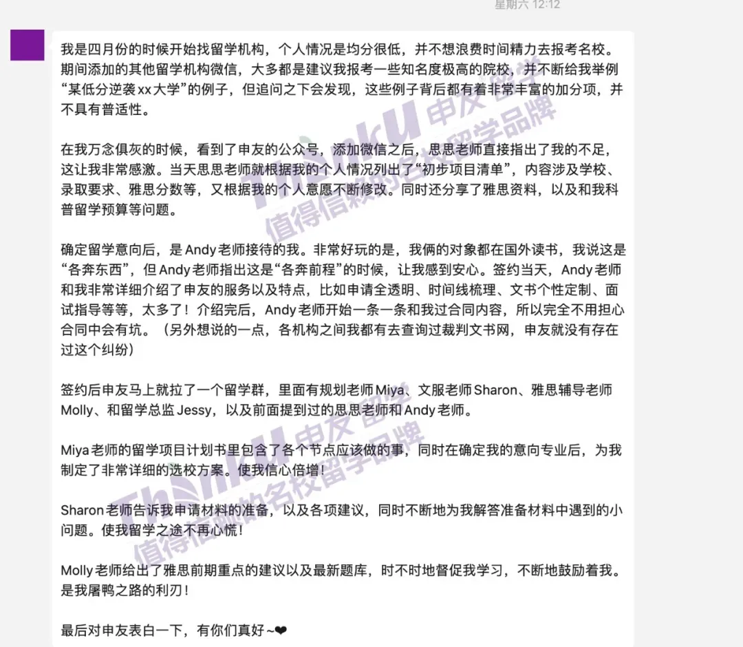 申友留学成立于2012年,主打“非中介”模式,是一家专注口碑和精细化服务的留学机构,着重高端名校本硕博留学申请,留学申请过程全公开透明。